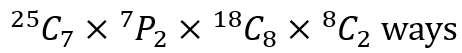 I attribute this unfortunate preference to the noose like grip that textbook publishers and calculator manufacturers have on the global high school examination boards and schools. This fourth case, should highlight this point well. Suppose we were faced with the following problem. In how many ways can a committee of 7 people and another of 8 people be chosen out of 25 people such that 2 members of each committee are to be designated as president and secretary and such that no person belongs to both committees? How would we proceed?