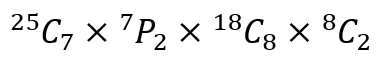 Most textbooks will state that the answer is 49473074851200 or 4.947×1013 ways or something of the sort, where each individual term has been calculated and then the product evaluated. But this is an onerous task to do by hand. Hence, expecting the student to get either answer is expecting them to use a calculator. But perhaps the above number is too large for most of us to even process. Let’s deal with some smaller numbers.