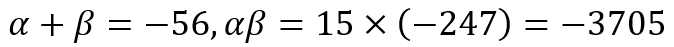 A little back of the napkin calculations will tell me that I need to find two numbers α and β such that