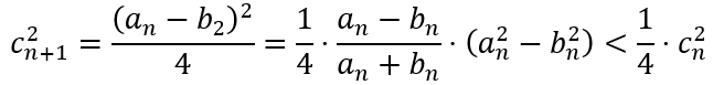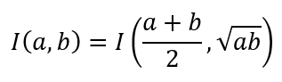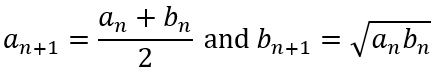 This means that the sequence cn also converges. And since cn cannot be negative, it must converge to 0. This means that an and bn converge to the same value. Since this common value is obtained by converging series of arithmetic and geometric means, it is called the arithmetic-geometric mean (AGM). Let us designate it with m.