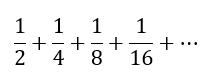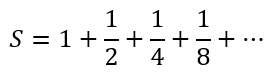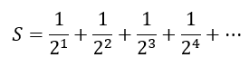 However, let us spend some time understanding why this is the case. What in the world is the pattern in our series? We can recognize that all the values in the denominator are powers of 2. Let us designate the sum with S. Then we can write