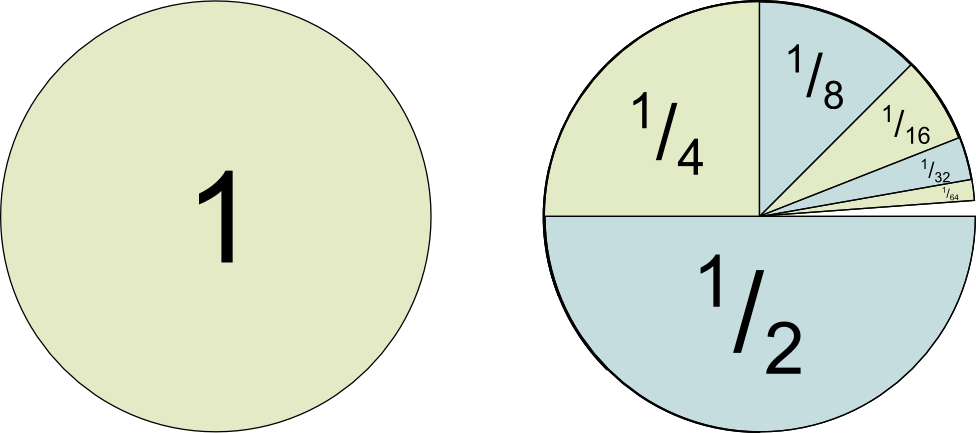 After some nifty algebraic manipulation we showed that S = 2. Since the sum we are considering in this post only lacks the starting 1, we can conclude that the sum of the infinite series for this post is 1.