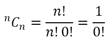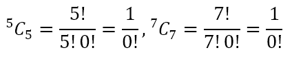 can only be true if 0! = 1. However, this does not align with the definition of the factorial. However, to ensure that nCn and nC0 are meaningful, which they are, and can be meaningfully calculated, we quite arbitrarily define 0! to be equal to 1.