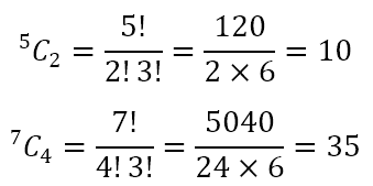 That is, the factorial of n is defined as the product of all the natural numbers from 1 to n. Hence, 3! = 1 × 2 × 3 = 6, 4! = 1 × 2 × 3 × 4 = 24, 5! = 1 × 2 × 3 × 4 × 5 = 120, etc. Now, given n distinct objects, the number of ways of choosing r of them is given by nCr, which is defined as