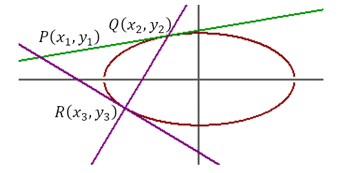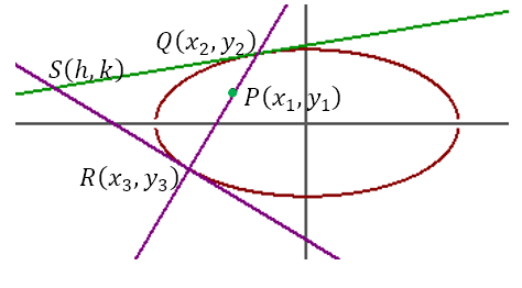 From point P tangents are drawn to touch the ellipse at Q(x2, y2) and R(x3, y3). This is shown in the figure below.