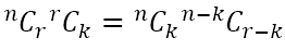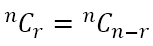We proceed as follows. Suppose we have n items and we have to select r of them for some purpose. This obviously can be done in nCr ways. However, by selecting the r items for the purpose, we automatically create a selection of the remaining n – r items not for that purpose – that is for some other purpose. Selecting n – r items for some other purpose can obviously be done in nCn – r ways. Since the selection of r items automatically creates a selection of the remaining n – r items, the number of ways must be equal. Hence, nCr = nCn – r .