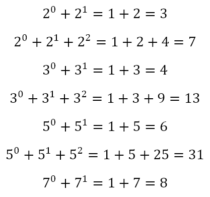 The results are also color coded. 21 links with 3, 22 links with 7, 31 links with 4, 32 links with 13, 51 links with 6, 52 links with 31, and 71 links with 8. Of course, if you are familiar with series of powers of natural numbers, you will recognize that
