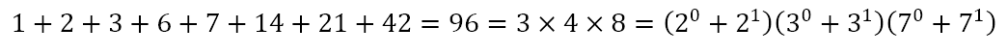 Hence, it seem as though, for a number like, say 42, the sum of the factors can be written as