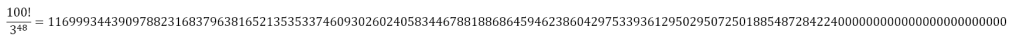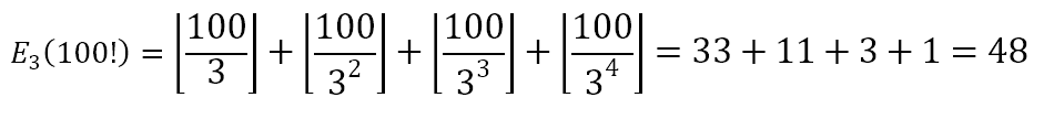 Let us use this result to determine the exponent of 3 in 100!. Since 34 ≤ 100 ≤ 35, r = 4. Hence,